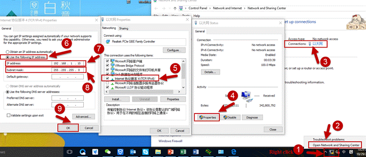1.路由器LAN口連接到PC,PC設定為固定IP位址(192.168.1.10)。